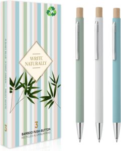 Set de trois stylos au design premium, corps en aluminium et accents en bambou naturel. Stylos fins à pointe lisse, parfaits pour écrire avec style au quotidien. Un cadeau élégant, durable et abordable.